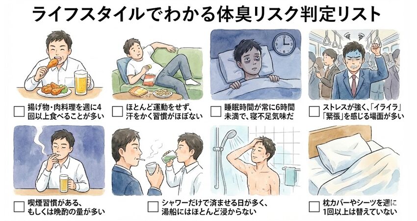 上の項目に3つ以上当てはまる場合、生活習慣によって体臭が強まりやすい環境になっている可能性があります。