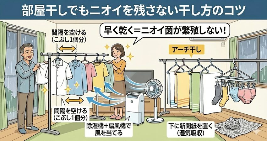 洗濯から5時間以内に完全乾燥できると、ニオイの発生をかなり抑えられます。