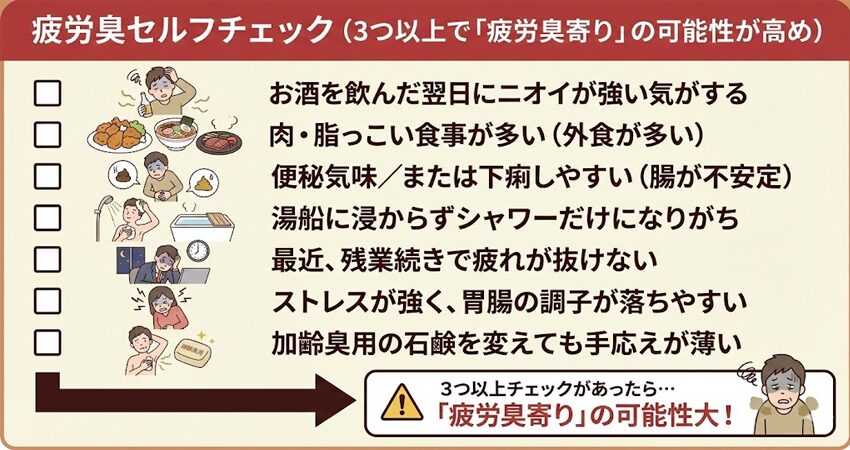 疲労臭セルフチェック(3つ以上で「疲労臭寄り」の可能性が高め)