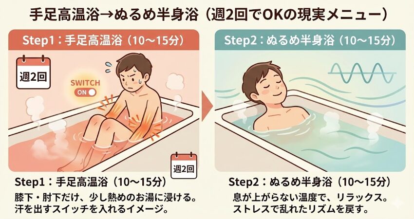 手足高温浴→ぬるめ半身浴(週2回でOKの現実メニュー)