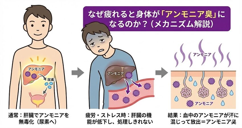 なぜ疲れると身体が「アンモニア臭」になるのか?(メカニズム解説)