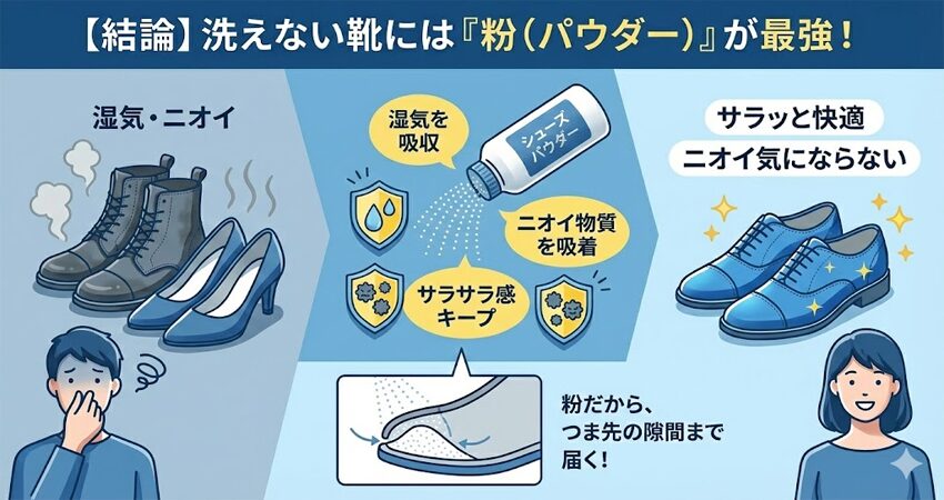【結論】洗えない靴には「粉(パウダー)」が最強である理由