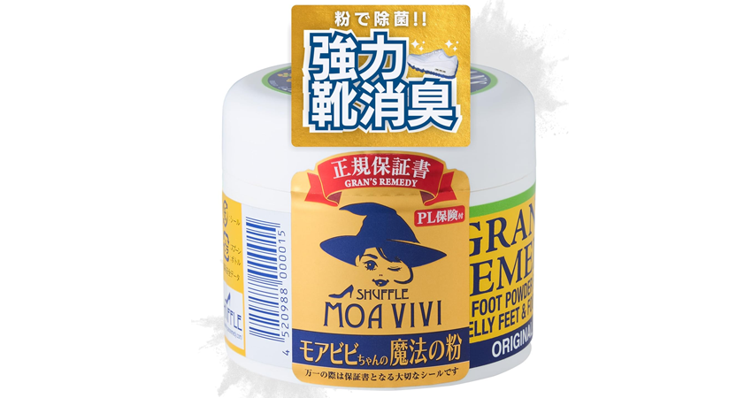 グランズレメディは、靴の中にふりかけて使うパウダータイプの消臭剤です。スニーカーや革靴、ブーツなど、いろいろな靴に使えるのが魅力。特に「靴そのもののニオイ」が強い場合に向いています。